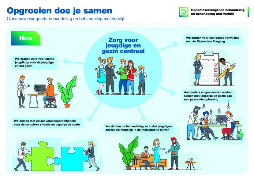 Ieder gezin is anders, dus voor ieder gezin kijken we naar de beste oplossing voor dat gezin. Daarvoor zetten we onze deuren voor elkaar open en werken we integraal samen om die hulp te bieden die de jeugdige en het gezin nodig heeft. Via een gezamenlijke voordeur, ook wel de Bijzondere Toegang genoemd, bepalen wij samen met de jeugdige en het gezin de route. Na een uitgebreid gesprek maken de samenwerkende jeugdhulpaanbieders een plan van aanpak. De grenzen van de aanbieders vervagen en de beste behandeling kan heel goed een combinatie zijn van methodieken van verschillende aanbieders. Deze intensieve vorm van samenwerking tussen gemeenten en jeugdhulpaanbieders is uniek in Nederland. Daar zijn we trots op!